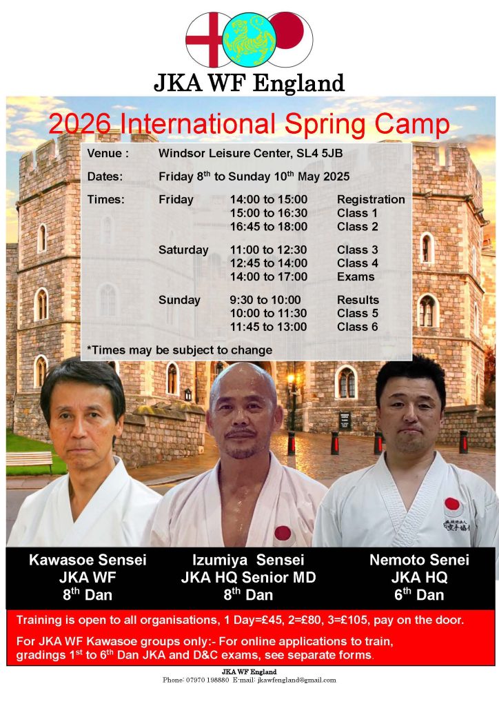 Friday 6th – Sunday 8th May – JKA WF England 2022 International Spring Camp at Windsor Leisure Centre. For details, please go here.